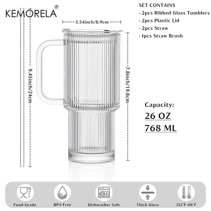 With a generous 760ML capacity, these tumblers provide ample space for your favorite drinks, whether it's a refreshing iced coffee or a warm cup of cocoa.